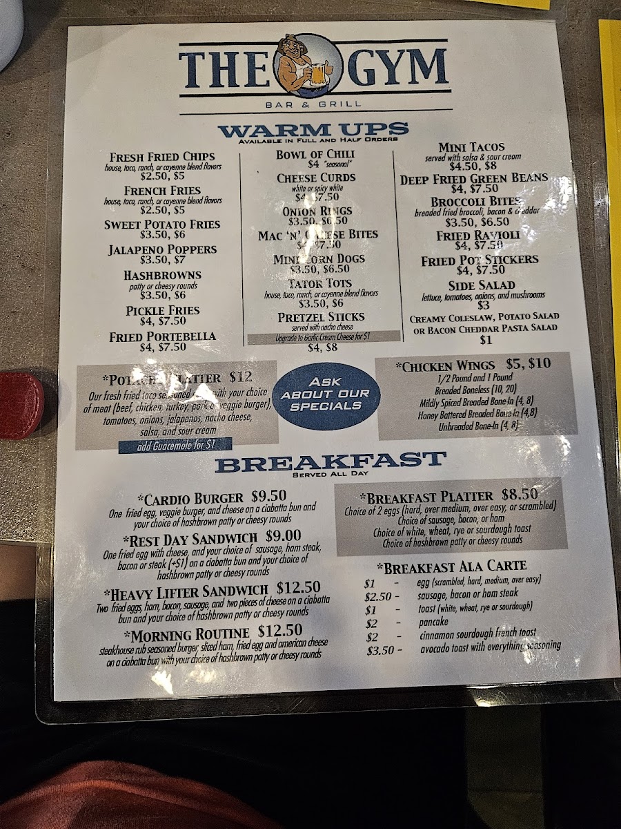 The Gym Bar & Grill in Sauk City offers a vibrant menu that perfectly blends hearty bar favorites with creative breakfast and lunch options. Whether you’re fueling up with their Breakfast Platter or tempting your taste buds with the Cardio Burger or Heavy Lifter Sandwich, each dish balances flavor and satisfaction. Their Benedict variations—from the classic Original to the spicy twist—showcase refined breakfast craftsmanship.